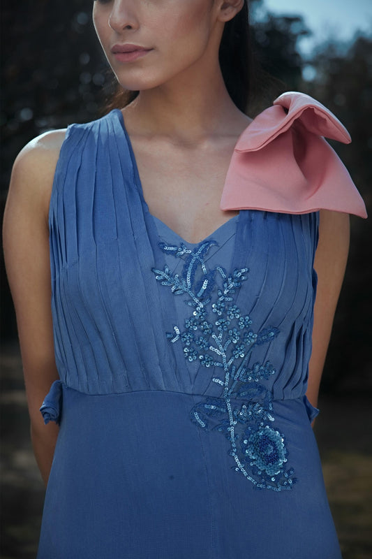 Aqua Blue Cord Set With Pearl Detailing (Komal Kapoor Grover)