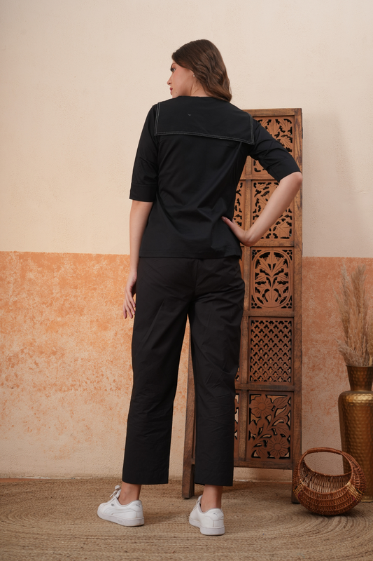 Black Poplin Shirt With Appliqué And Pearl (Punanya Virmani)