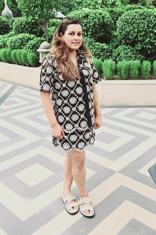 Black Poplin Shirt With Appliqué And Pearl (Mitali Wadhwa)
